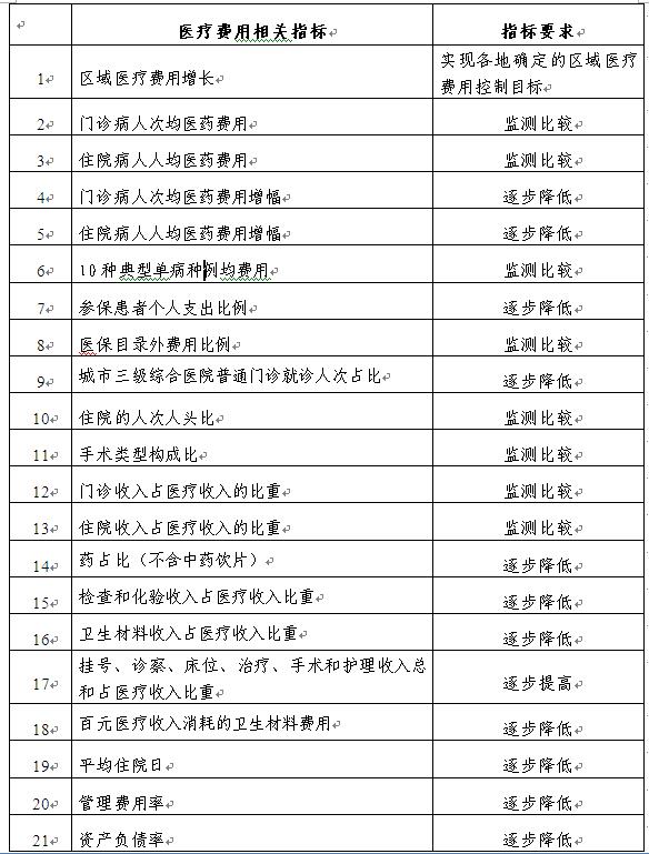 公立醫(yī)院醫(yī)療費用控制主要監(jiān)測指標及說明