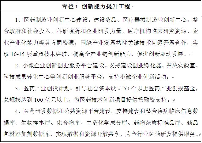 加強(qiáng)研發(fā)支撐。支持建設(shè)臨床前藥效評價平臺,規(guī)范藥品醫(yī)療器械臨床試驗基地(GCP基地)的建設(shè)和管理,優(yōu)化國家級科技創(chuàng)新基地布局,統(tǒng)籌國家臨床醫(yī)學(xué)研究中心建設(shè),提高臨床研究質(zhì)量,滿足新產(chǎn)品開發(fā)和藥品、醫(yī)療器械上市后質(zhì)量評價的需要,促進(jìn)科技成果轉(zhuǎn)化應(yīng)用。支持創(chuàng)業(yè)孵化、開放實(shí)驗室等小企業(yè)服務(wù)平臺建設(shè),支撐研發(fā)型小企業(yè)發(fā)展。加強(qiáng)醫(yī)藥研發(fā)公共數(shù)據(jù)和資源平臺建設(shè),提高開放共享水平和專業(yè)化服務(wù)能力。發(fā)揮金融創(chuàng)新對技術(shù)創(chuàng)新的助推作用,引導(dǎo)社會資本設(shè)立醫(yī)藥領(lǐng)域創(chuàng)業(yè)投資基金、股權(quán)投資基金,支持早期研發(fā)項目實(shí)施和創(chuàng)新型企業(yè)成長。